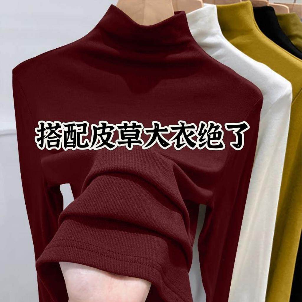 双面螺纹德绒半高领长袖t恤女士内搭打底衫新款秋冬保暖百搭上衣