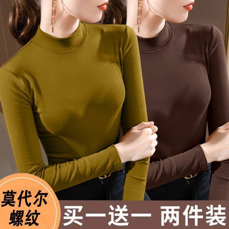 单/两件 莫代尔螺纹打底衫女秋冬内搭修身显瘦半高领长袖t恤上衣