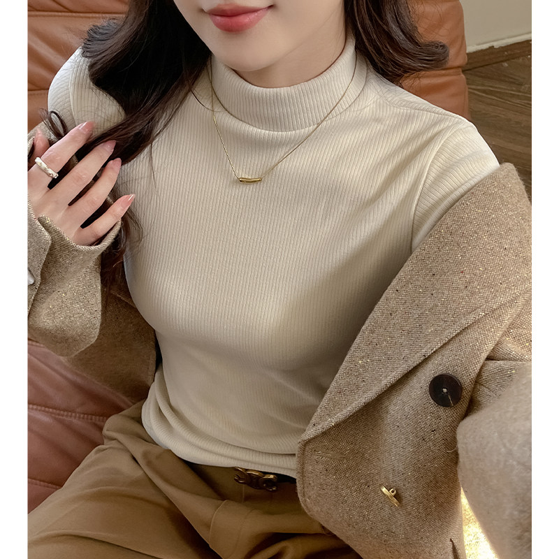 碧舍简约韩版半高领保暖螺纹打底衫纯色糯叽叽品质长袖T恤百搭潮