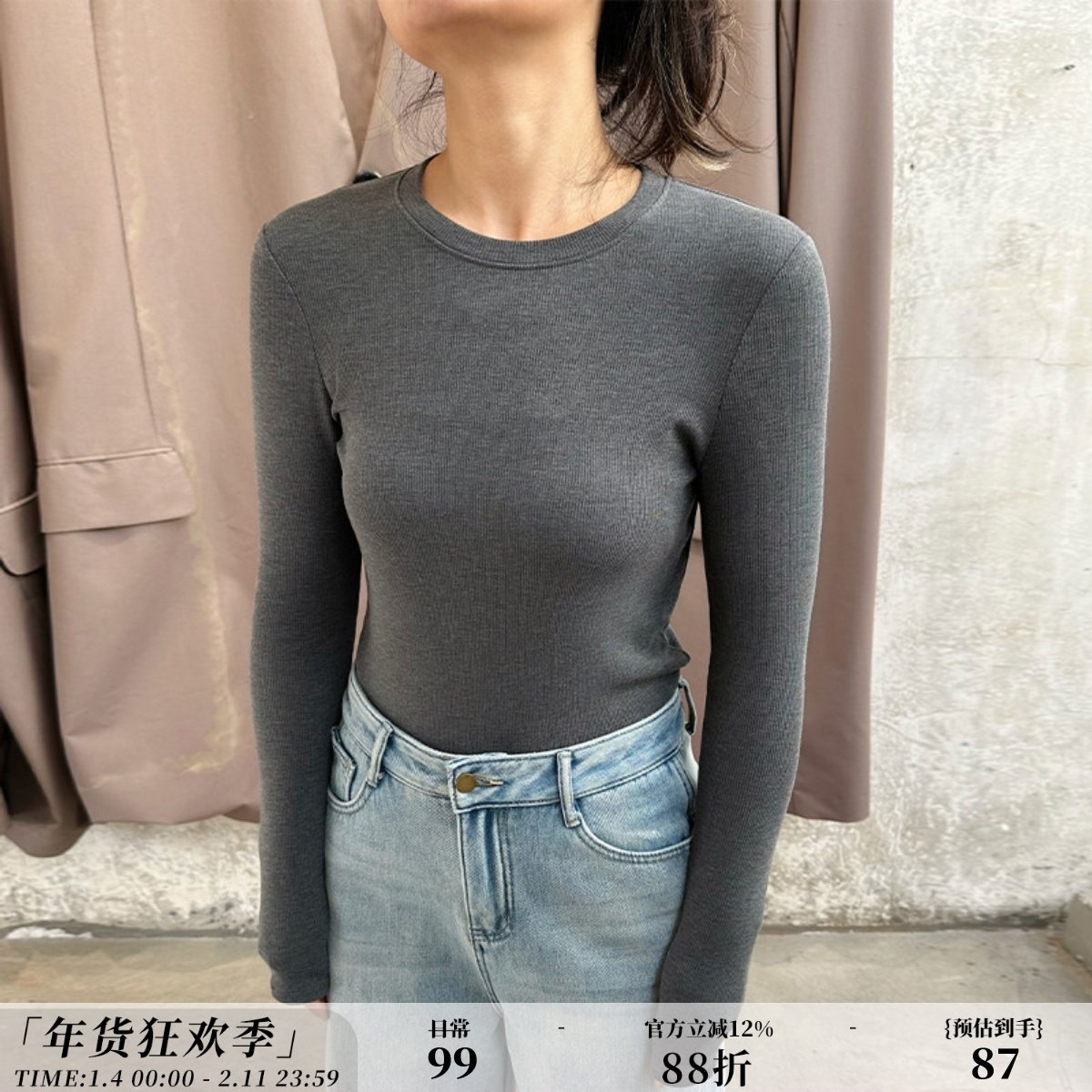 2026秋冬新款欧货时尚螺纹打底衫内搭基础款长袖修身显瘦U领T恤女