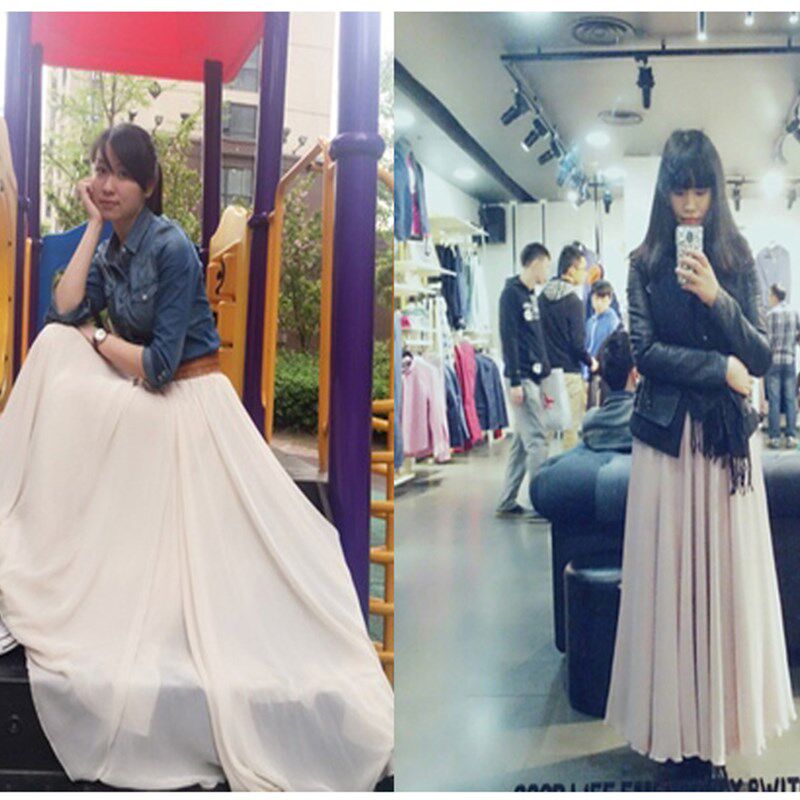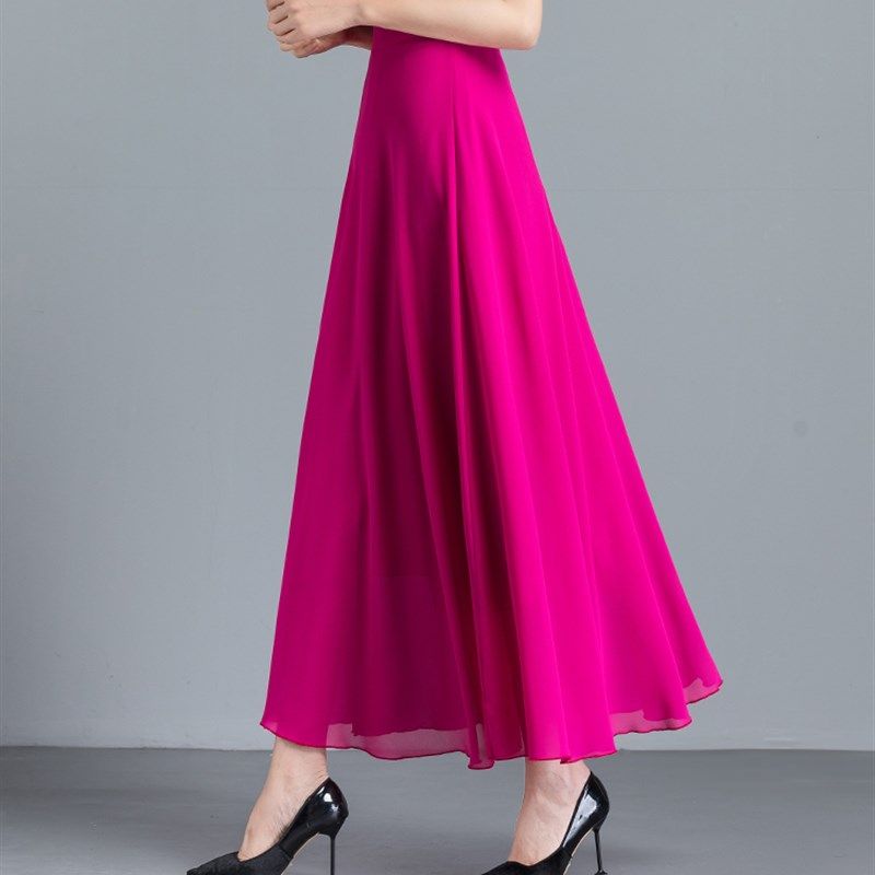 新款女半身裙夏季长裙雪纺百搭高腰百褶裙波西米亚裙大摆长沙裙子