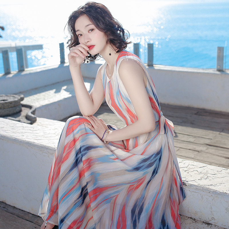 2021春夏装新款雪纺连衣裙海南三亚显瘦长裙旅游度假波西米亚裙子
