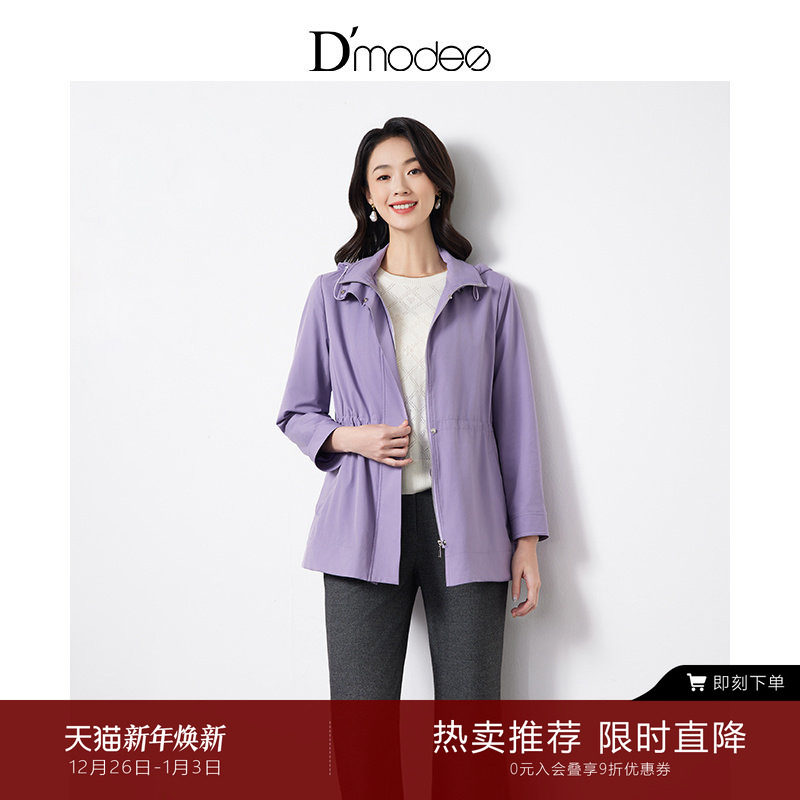 黛玛诗2025秋季新款休闲百搭紫色风衣女士外套短款小个子连帽子