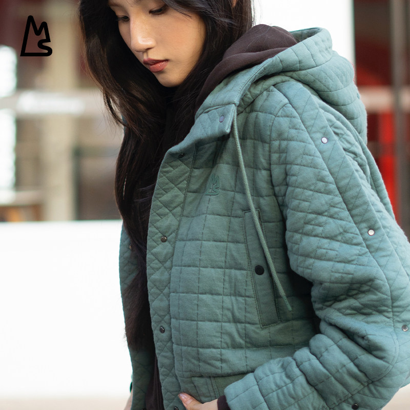 magnlens冬季新品女士外套短款夹层保暖提花绗缝棱格设计休闲上衣