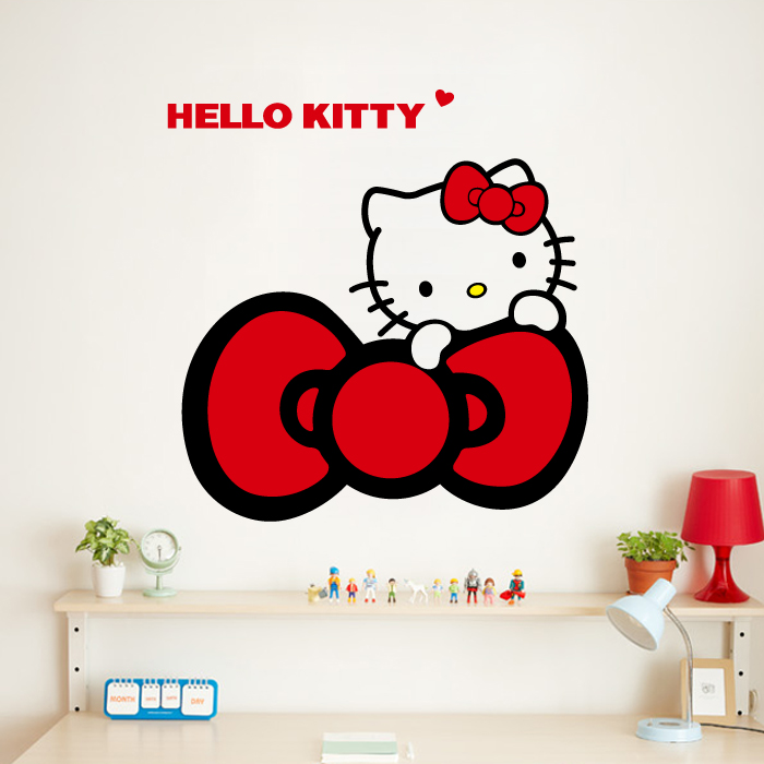 hello kitty猫蝴蝶结墙贴 儿童房卧室装饰贴纸 凯蒂猫门贴玻璃贴