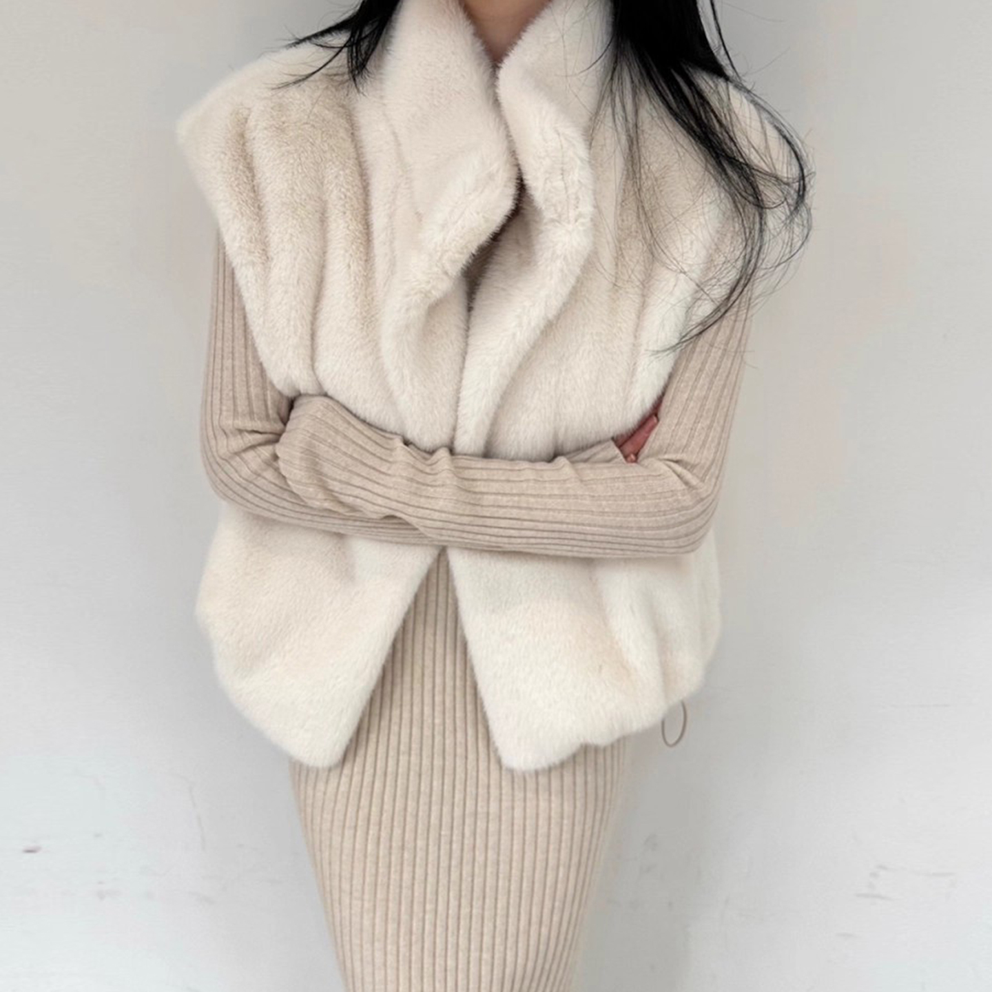 SerioLudere蛋仔很懒/ 立领保暖时髦百搭叠穿顺滑皮草马甲外套女