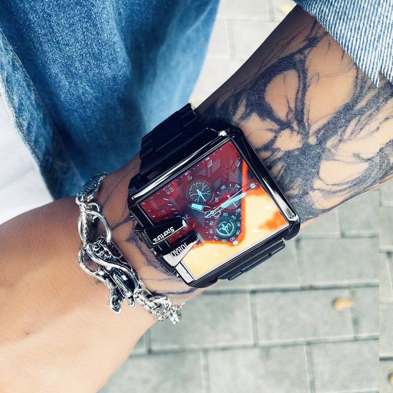 陈冠希bigbang同款大表盘手表男士超大欧美创意双时间钢带个性潮