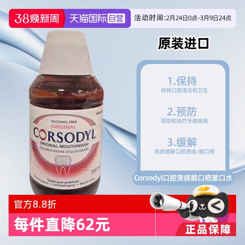 【自营】Corsodyl口腔溃疡鹅口疮漱口水300ml原味无酒精
