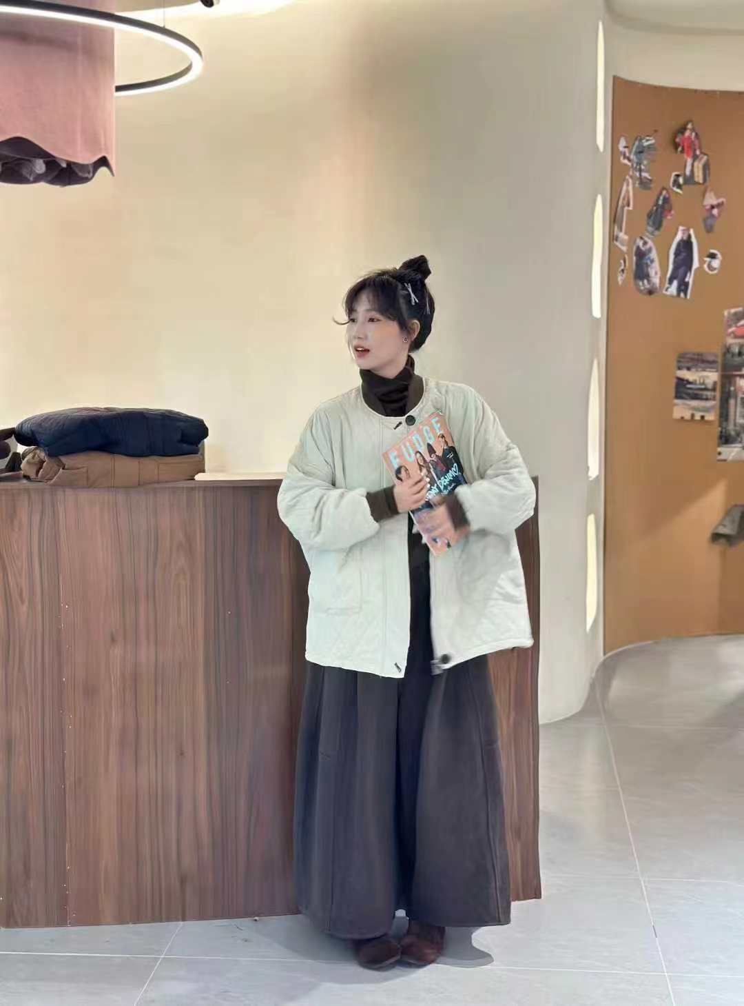 83637 清库 特 女士棒球领绗缝棉服 中长款加绒保暖棉衣 防风外套