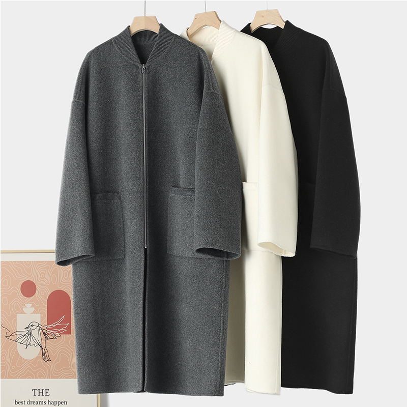 新款秋冬lp同款高支水溶羊毛双面羊绒大衣女中长款棒球领毛呢外套