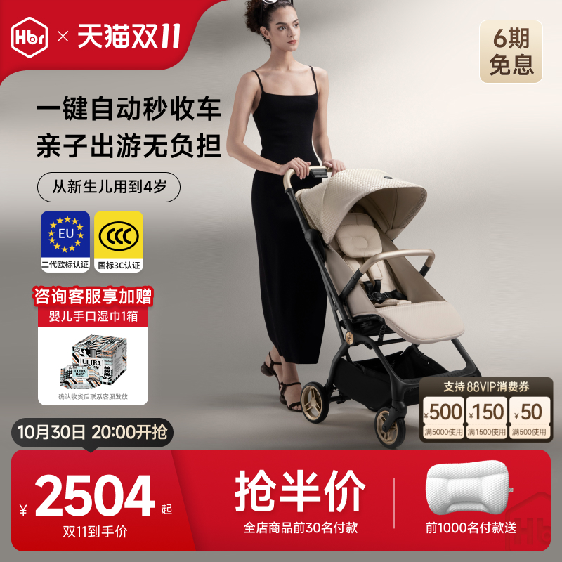 HBR虎贝尔婴儿车推车Mpro自动收车遛娃轻便高景观可坐躺折叠伞车