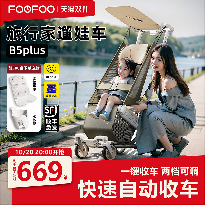 FOOFOO旅行家口袋推车婴儿车轻便可折叠一键收车宝宝儿童溜娃神器