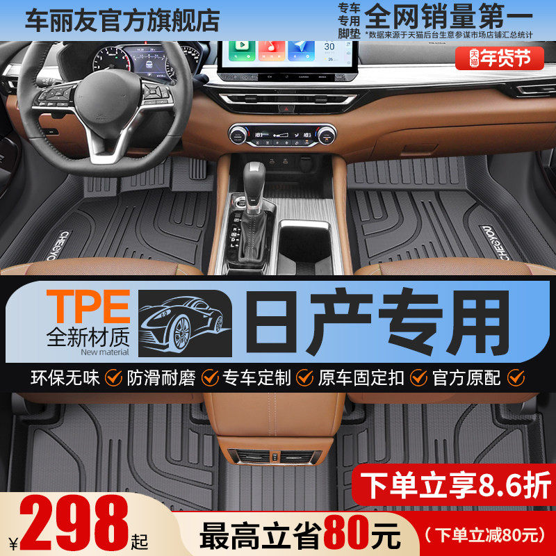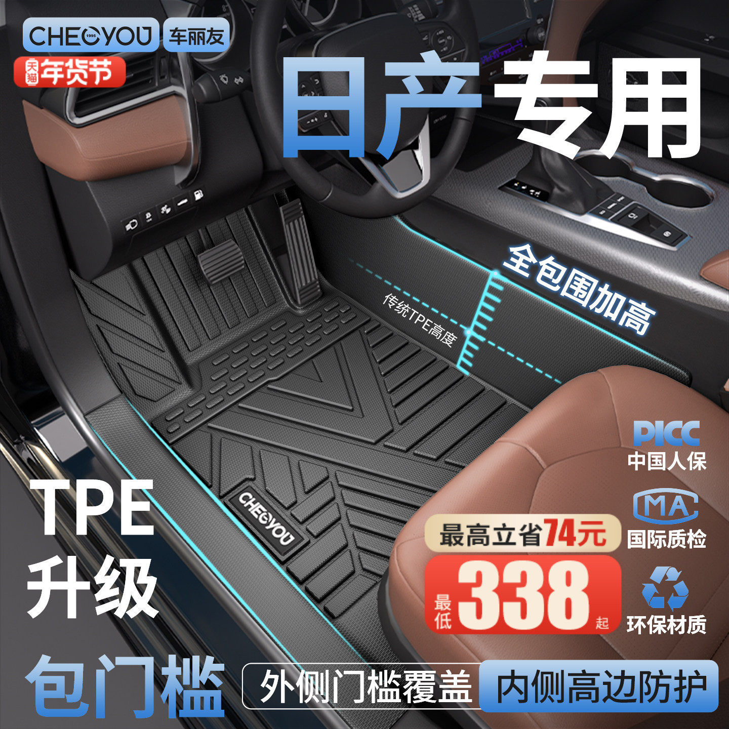 车丽友适用日产N7天籁14代轩逸N6逍客奇骏骐达TPE汽车脚垫全包围