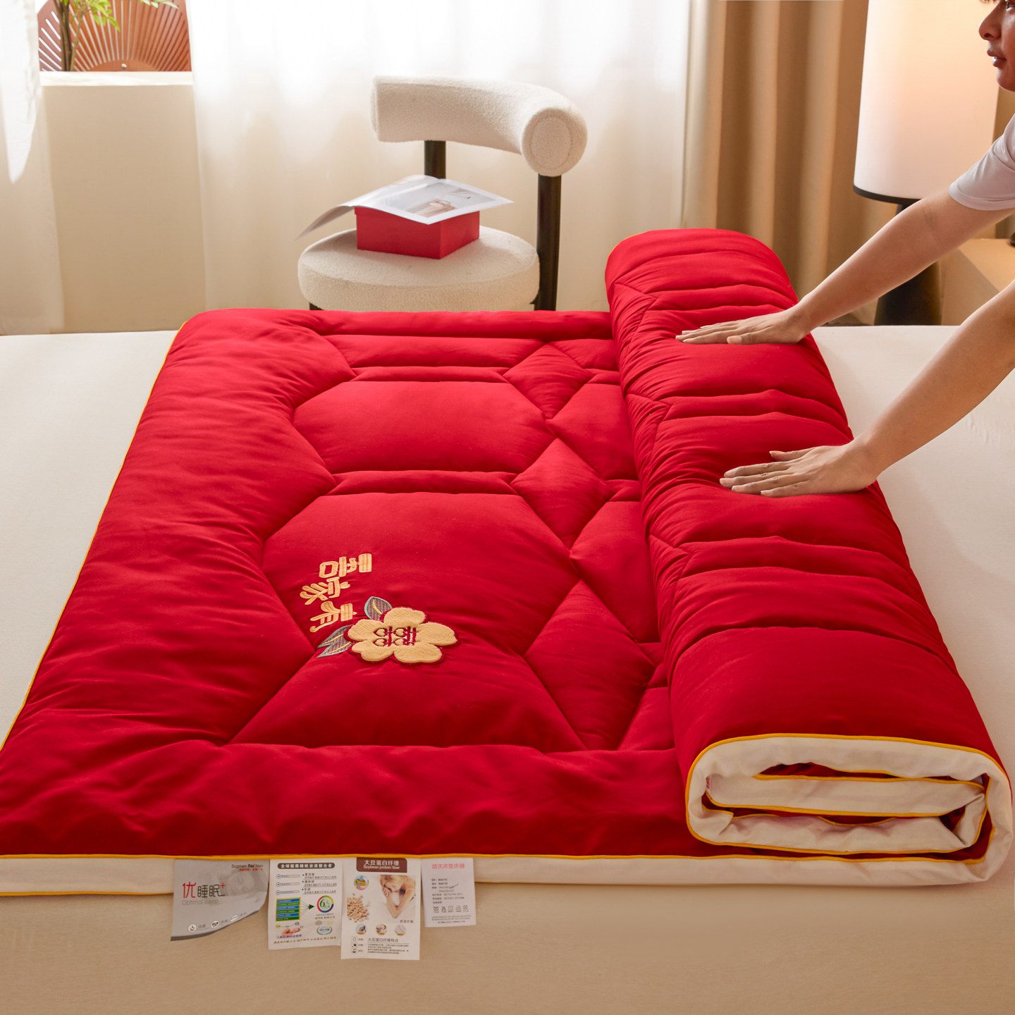 2026年雅鹿家纺新款立体婚庆绣花大豆床垫床褥加厚垫被褥子加厚