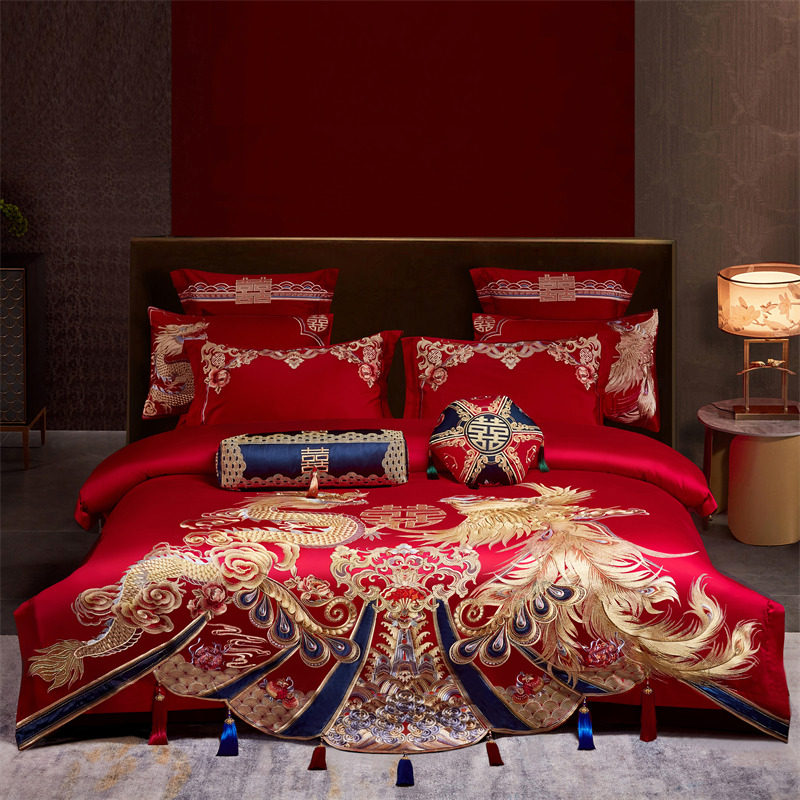 140s长绒棉结婚床上用品四件套全棉绣花婚庆六件套刺绣十件套喜被
