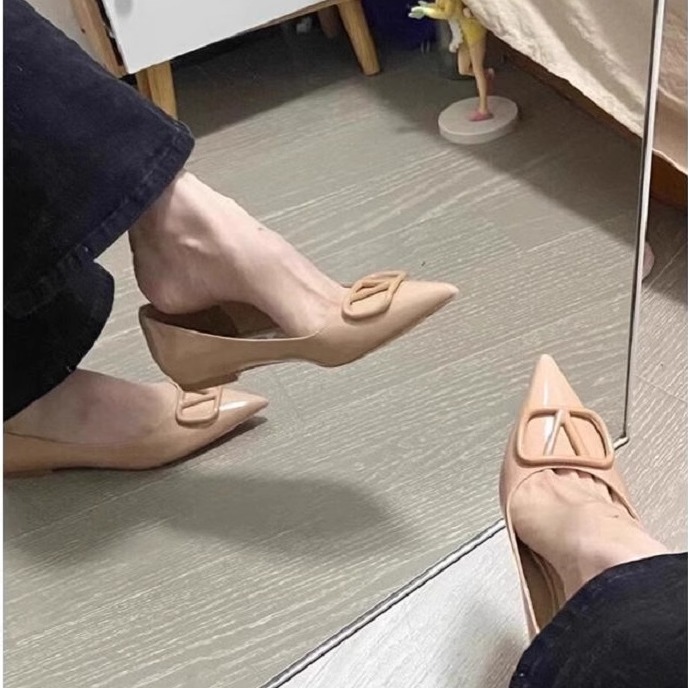 - 尖头粗跟中跟女单鞋