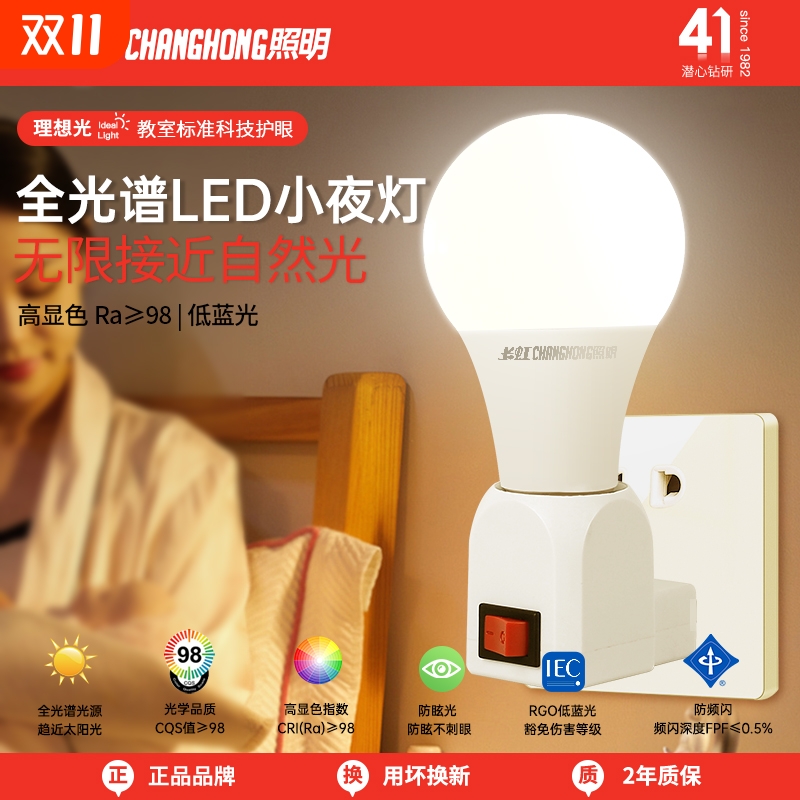 长虹照明全光谱led小夜灯插电式卧室床头灯护眼起夜间喂奶节能灯