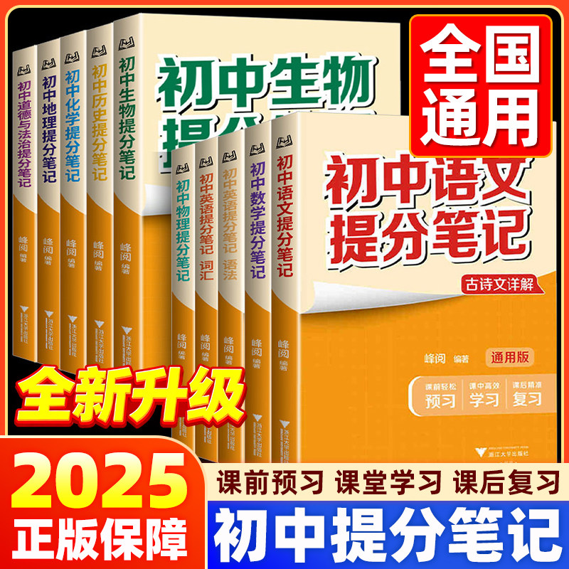 现货2025新版初中提分笔记 峰阅教研组全国通用中学教辅初中英语提分笔记 初中生数学提分笔记 张雪高效提分物理化学生物