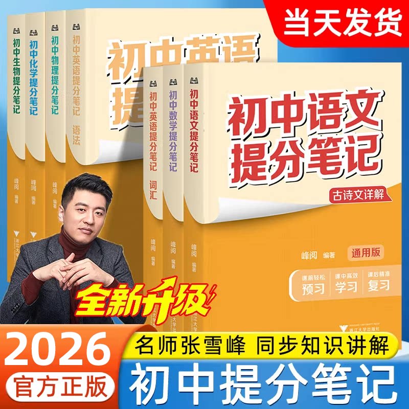 张雪峰初中提分笔记2025新版升级峰阅教研组编著学霸七八九年级上下手账语文数学英语物理化学生物全国通用词汇语法中考总复习预习
