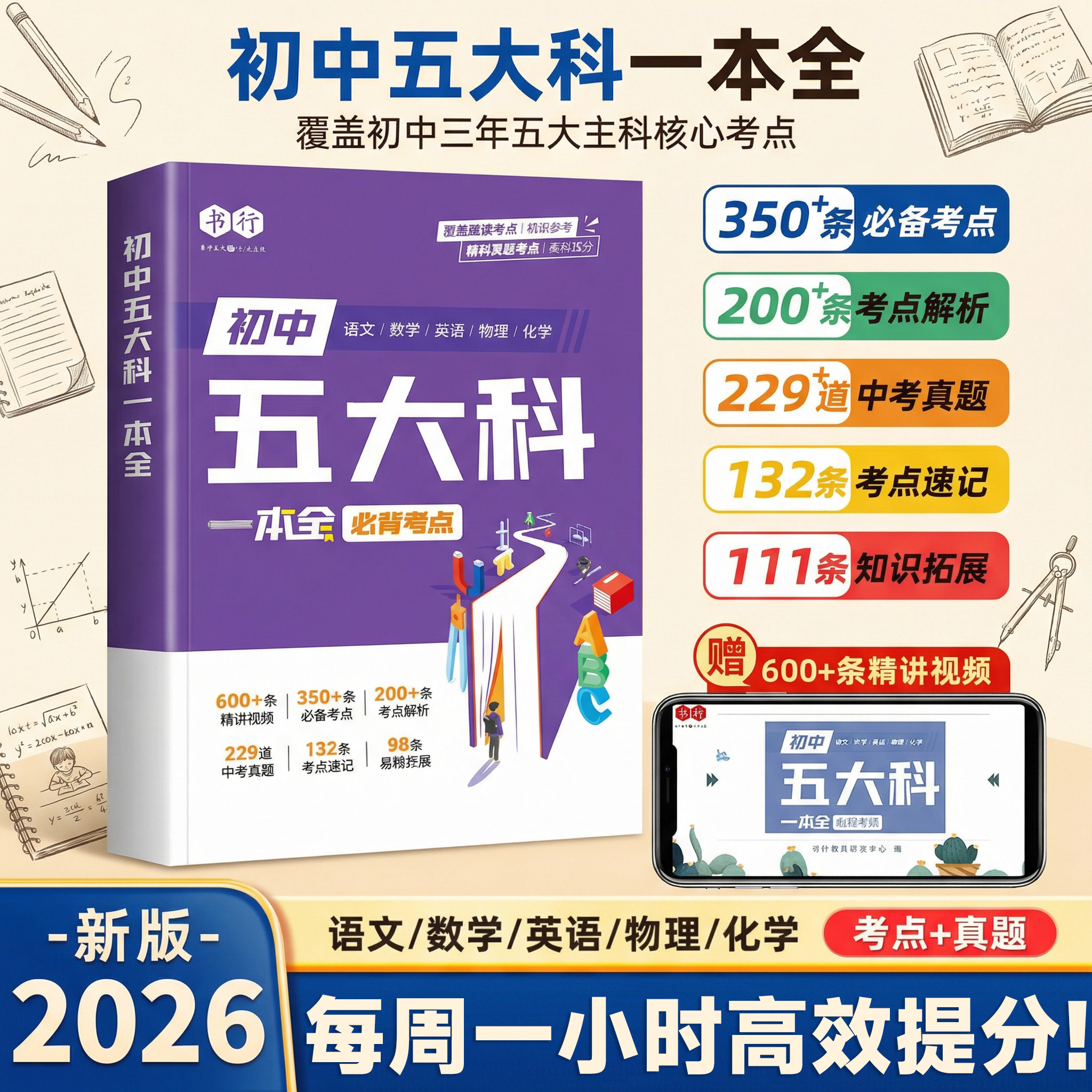 初中五大科核心考点一本通书行2026春季初中语文数学英语物理化学中考真题必背考点提分笔记指导教材人教版7-9年级三年备考必修题