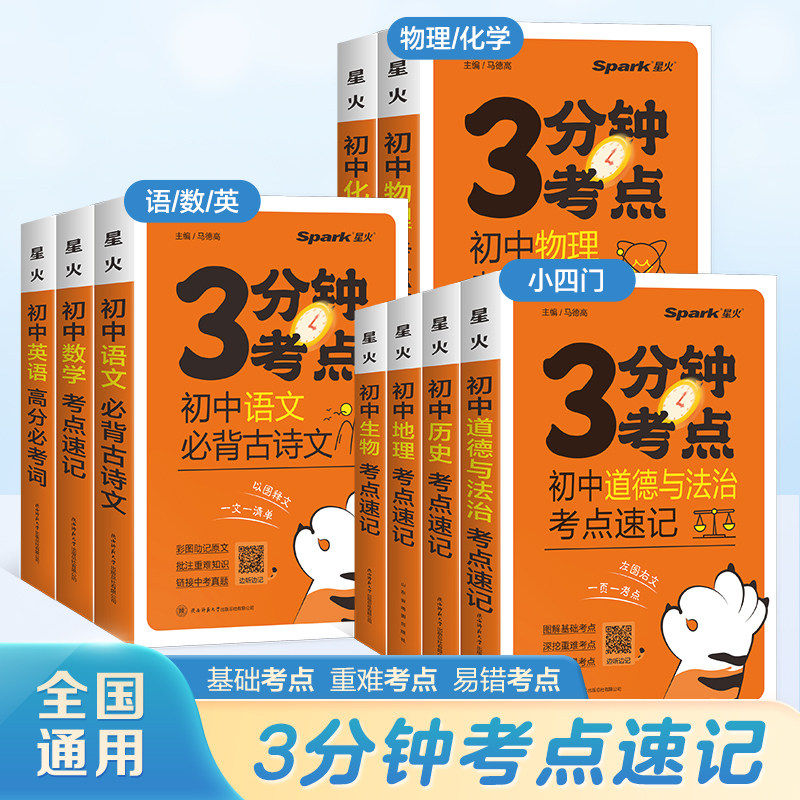 初中小四门必背知识点大全2026中考生物地理政治历史物理化学数学提分笔记口袋书星火初中七八九年级语数英3分钟考点速记手册资料