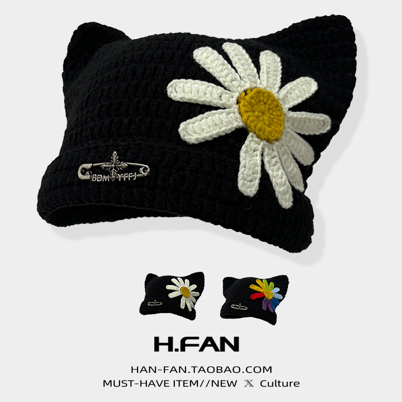 韩版潮牌GD同款小雏菊针织毛线帽子女秋冬保暖护耳冷帽2025新款