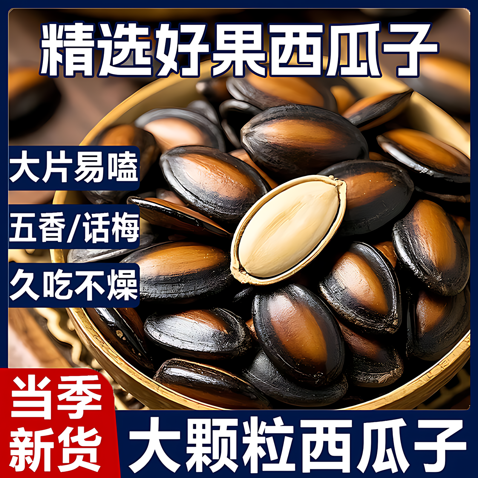 新货话梅五香味西瓜子坚果炒货零食黑瓜子批发1-2斤大颗粒美人