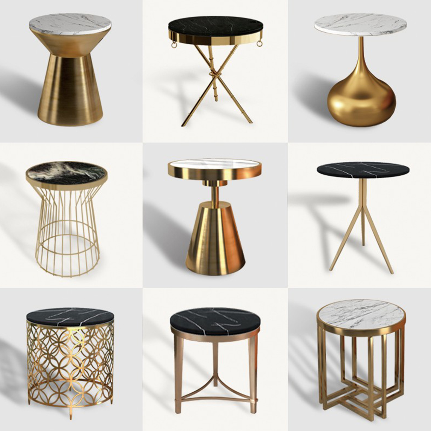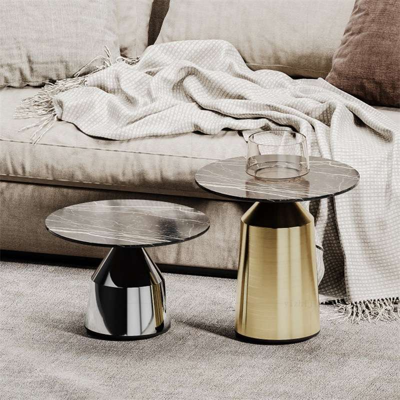 轻奢设计师家具不锈钢大理石边几现代简约小茶几样板房卧室圆几桌