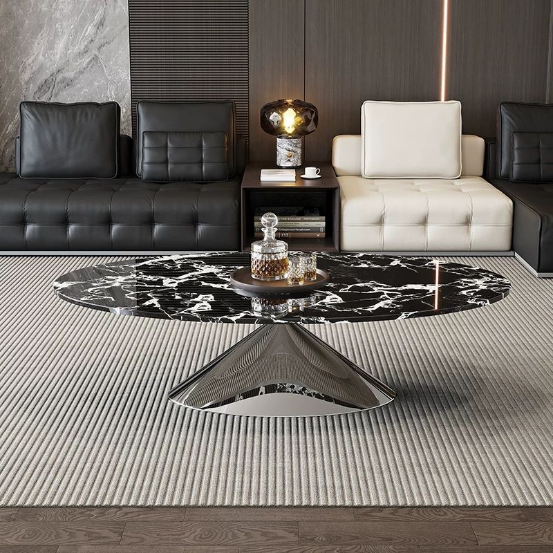 意式轻奢创意圆形茶几大理石不锈钢客厅极简组合异型高级家具定制