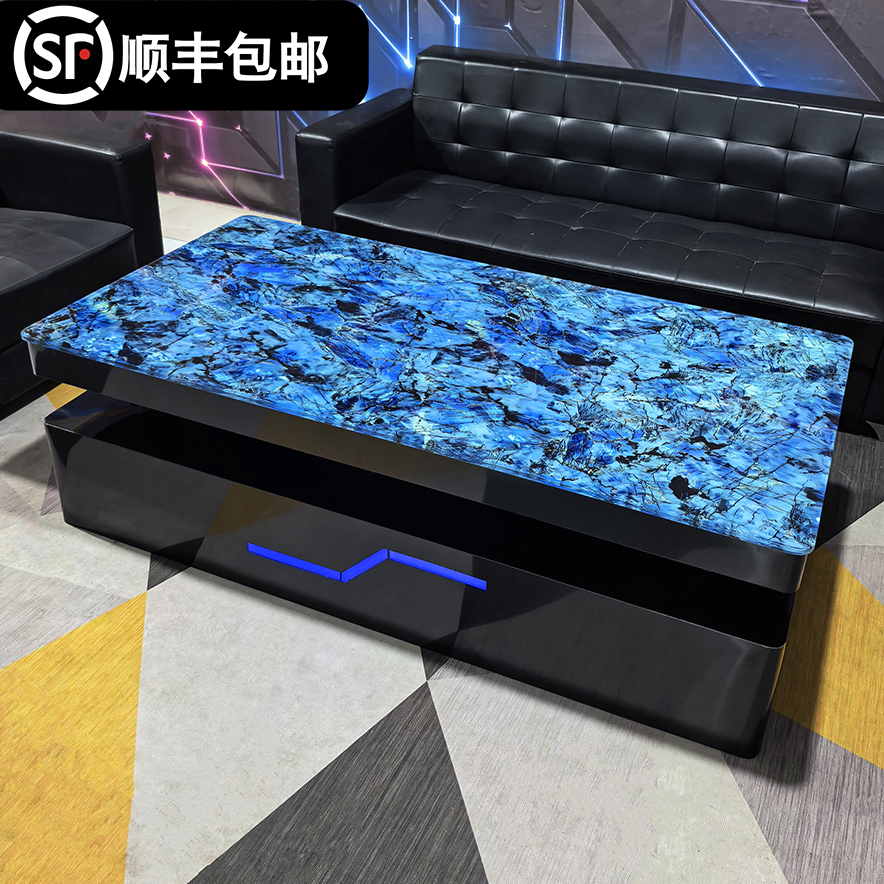 星空KTV茶几专用发光双层岩板大理石不锈钢钢化玻璃酒吧台桌子