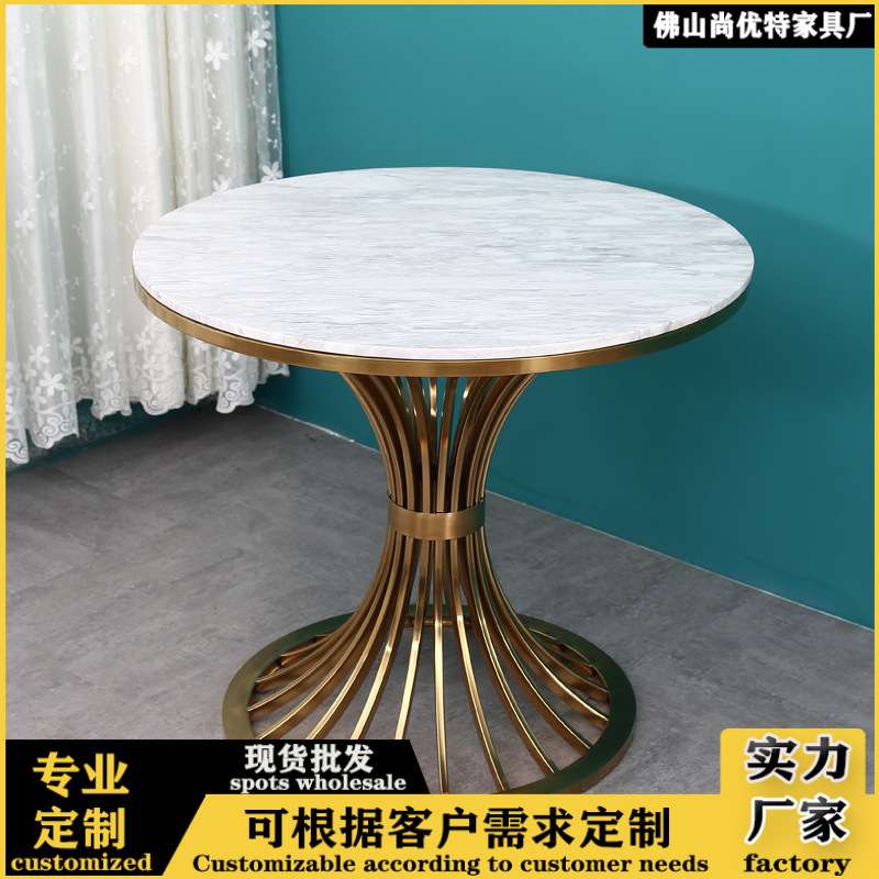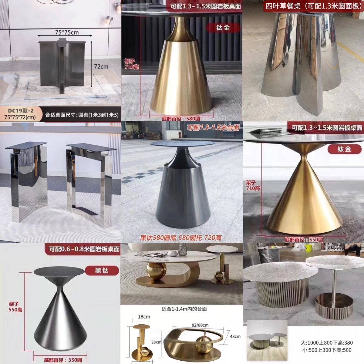 大理石圆餐桌腿支架家用创意岩板桌脚不锈钢镜面茶几支架餐桌底座