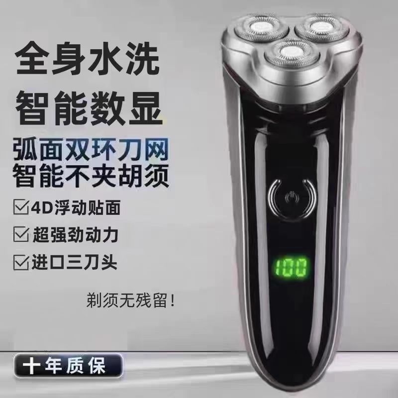 德技5D数显剃须刀男士刮胡刀全身水洗三刀头胡子刀自刮光头充电式