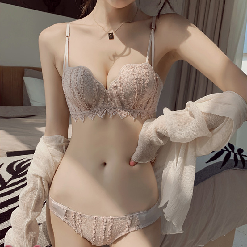- 性感聚拢蕾丝文胸套装