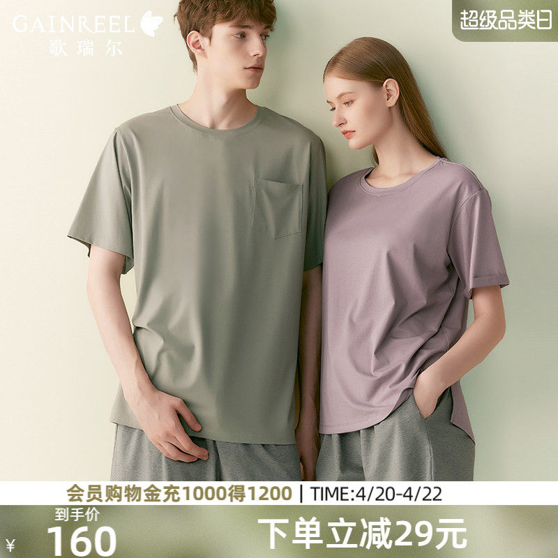 歌瑞尔睡衣女款2026年新款透气莫代尔棉短袖情侣家居服套装薄款