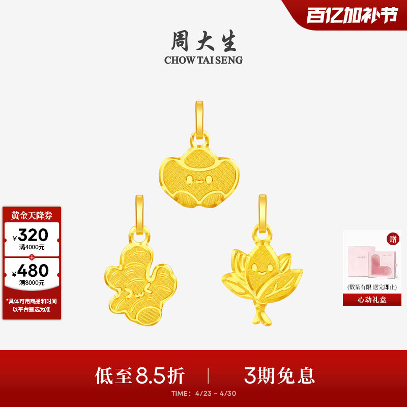 周生生mini好事发生黄金小吊坠足金好柿花生挂坠96211P