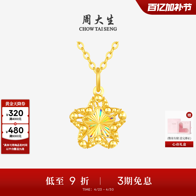 周大生小甜星黄金吊坠足金许愿星月亮项链星星挂坠送女友生日礼物