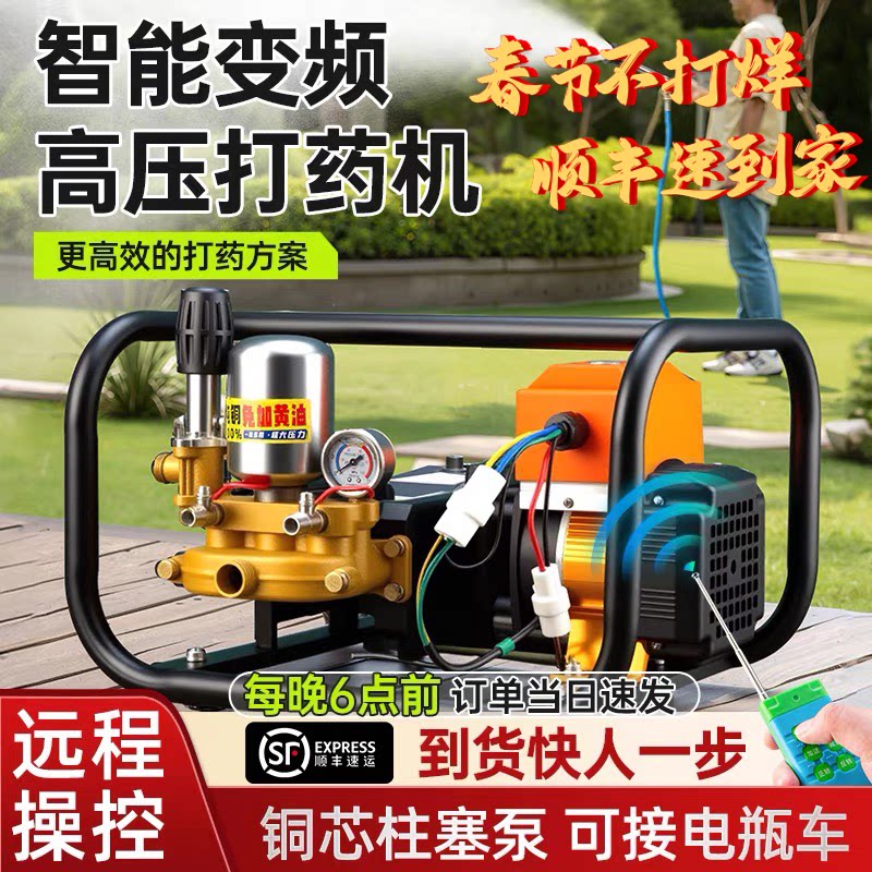 变频遥控电动车高压三缸柱塞泵打药机农用果树48V60V72V220喷雾器