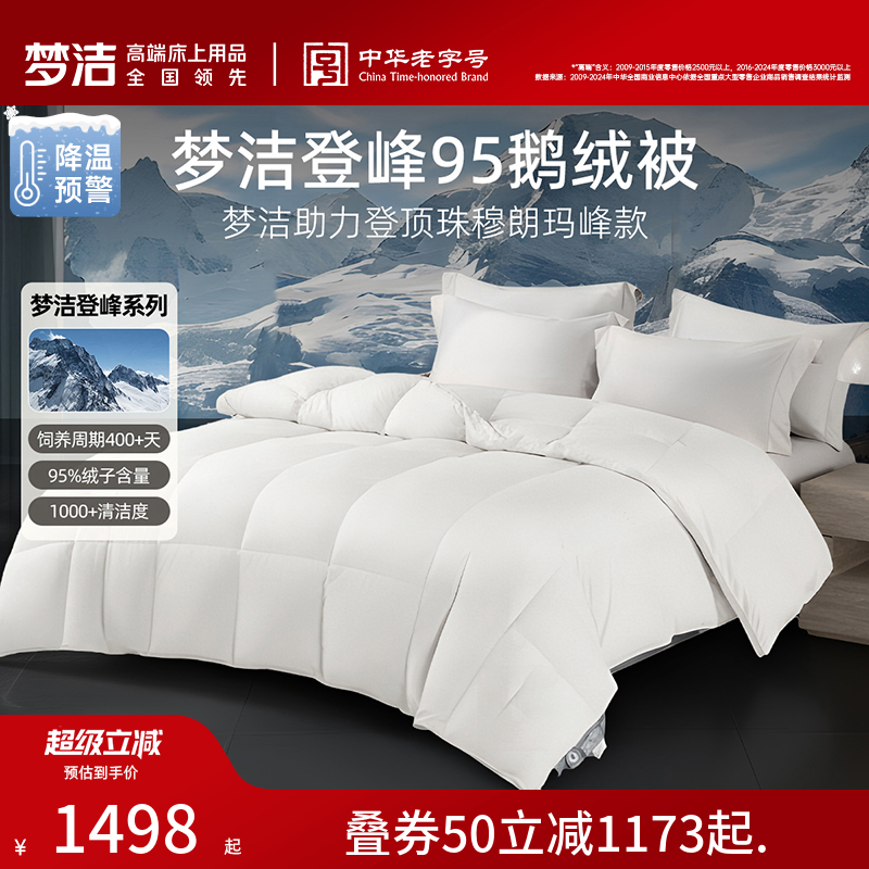 梦洁羽绒被95白鹅绒春秋加厚保暖冬被抗菌高蓬松登峰鹅绒被子被芯