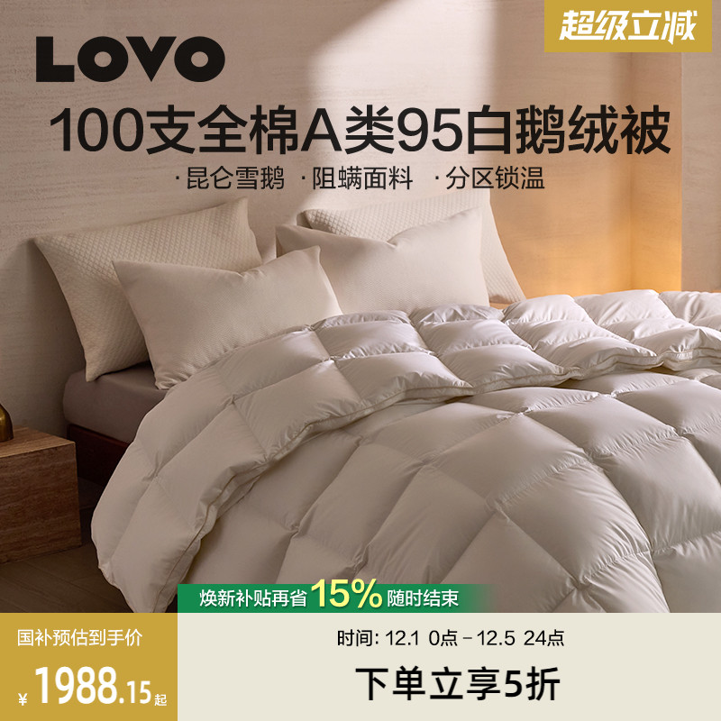 【新品】罗莱家纺LOVO羽绒被95白鹅绒被子被芯加厚冬被100支全棉