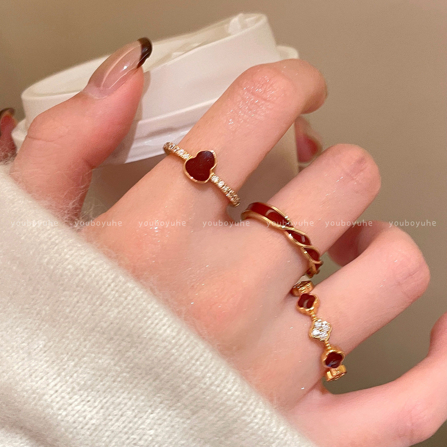 新中式红色葫芦开口戒指女小众设计叠戴食指戒轻奢高级感独特指环
