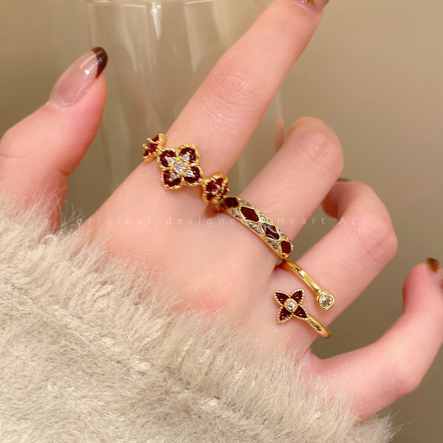 LAZYSURI懒苏芮艺术珐琅彩爱心戒指女开口戒指时尚新年红色饰品