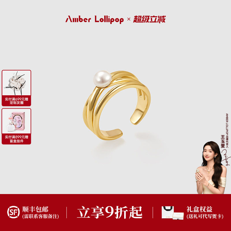 Amber Lollipop淡水珍珠戒指女线条交错开口指环轻奢小众食指戒