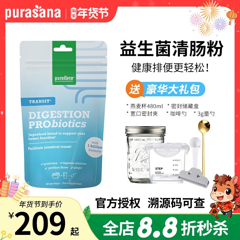 比利时purasana清肠粉助润肠排通肠道便宿毒益生菌膳食纤维酵素秘