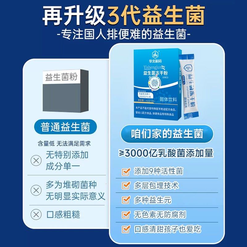 华北制药益生菌大人儿童肠胃肠z道酵素非调理清肠排宿便吃冻干粉
