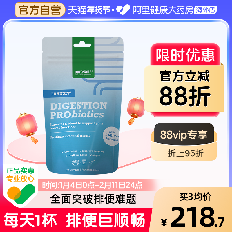 比利时purasana清肠粉助润肠排通肠道改善便秘宿便益生菌酵素