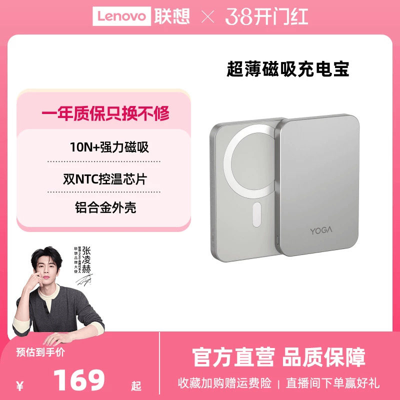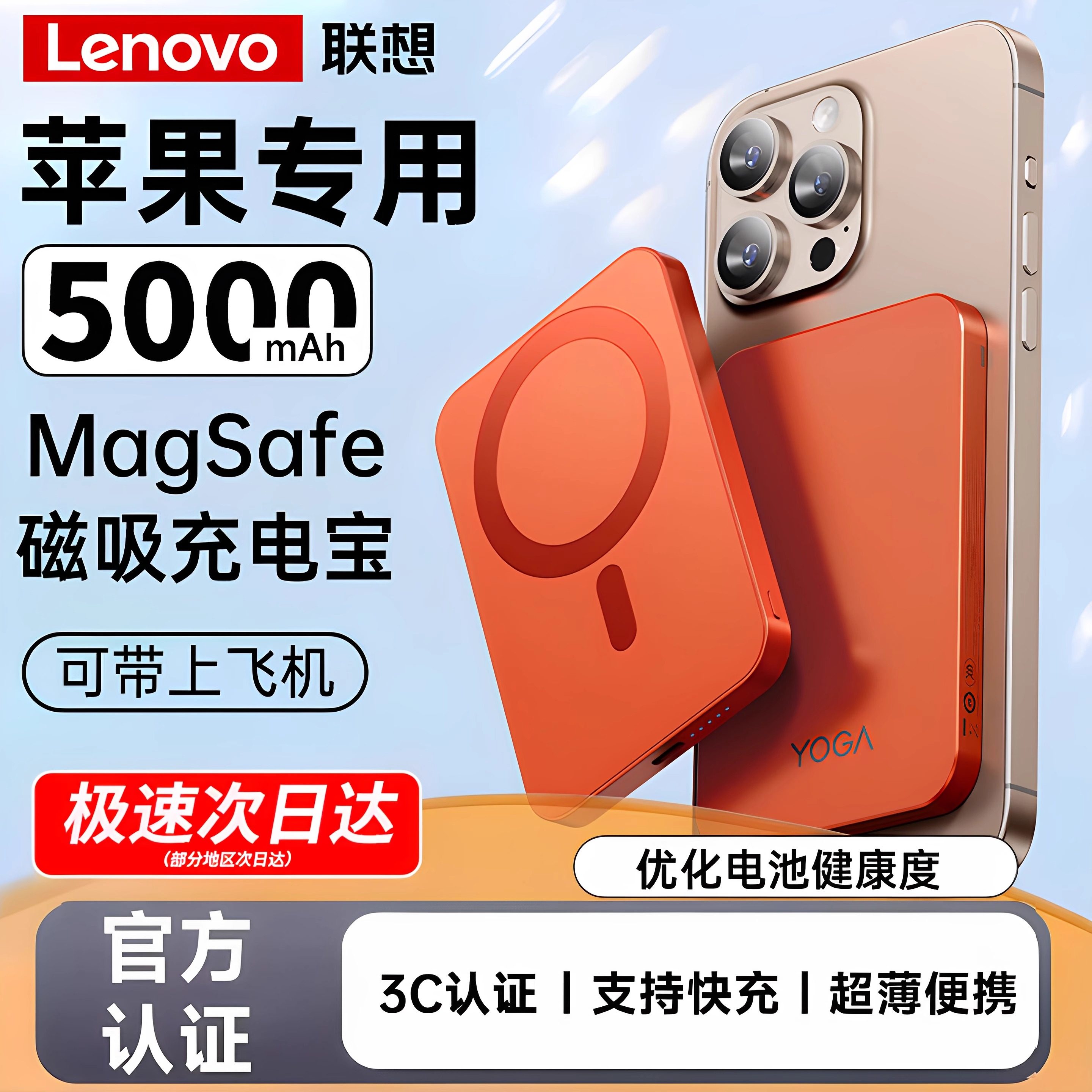 【国家3C认证可登机】联想YOGA Air超薄超轻铝合金磁吸充电宝大容量5000毫安便携充电宝有线双向快充电源