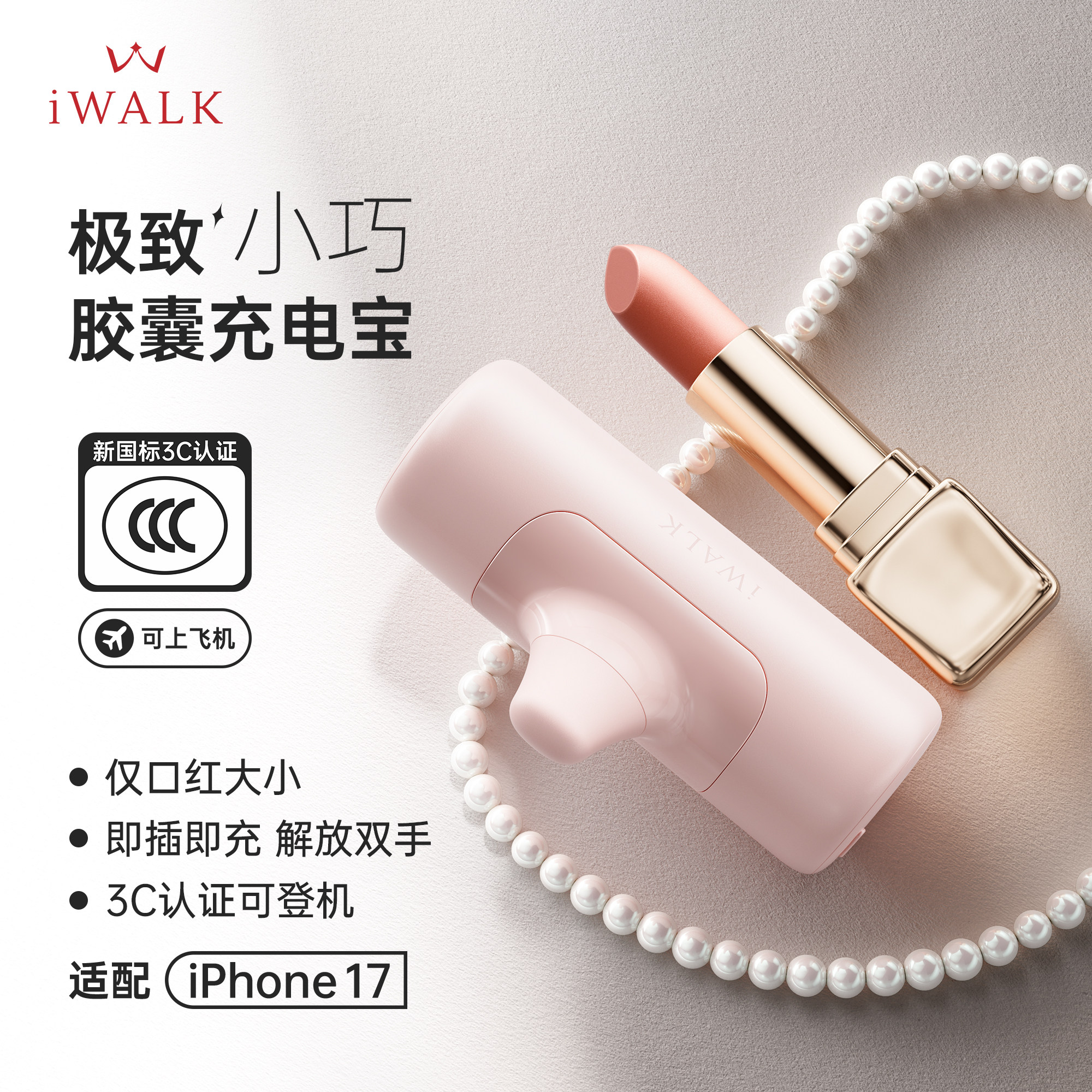 【3c认证可上飞机】iWALK爱沃可胶囊便携充电宝口袋超薄小巧迷你口红适配苹果17华为小米安卓轻薄小移动电源
