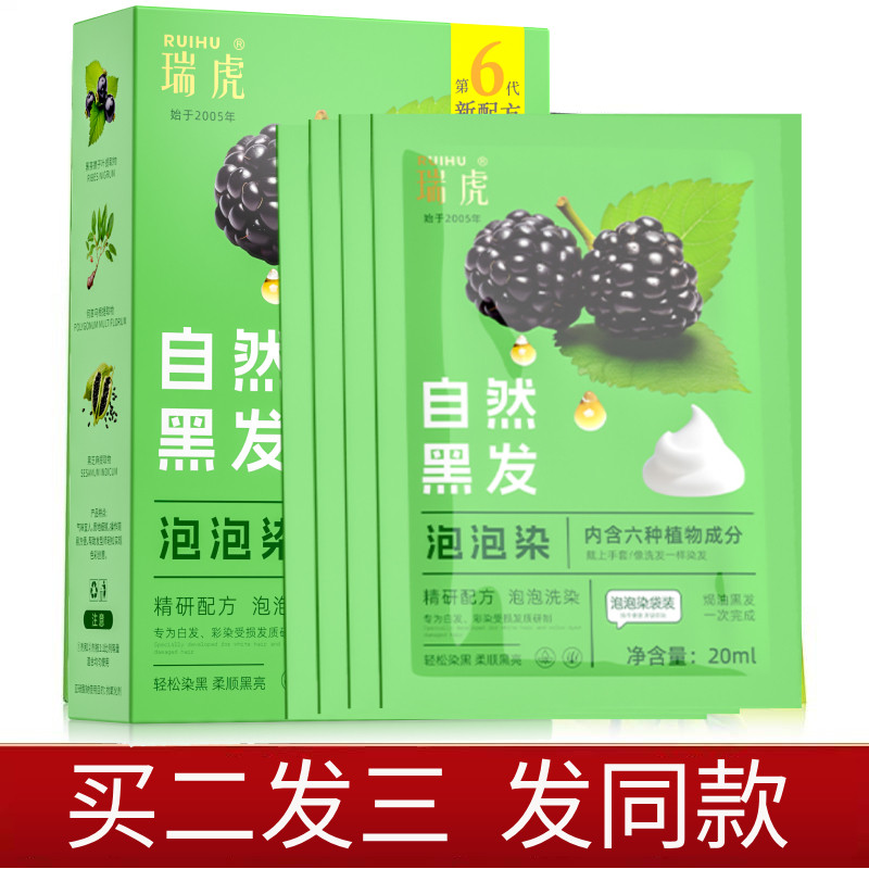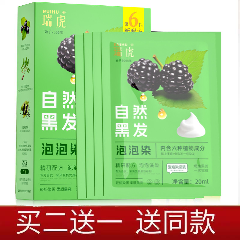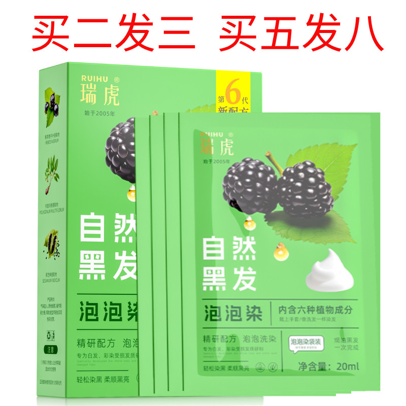 瑞虎染发剂含植物一洗黑不伤发自然纯黑色无刺激染发膏洗发水正品