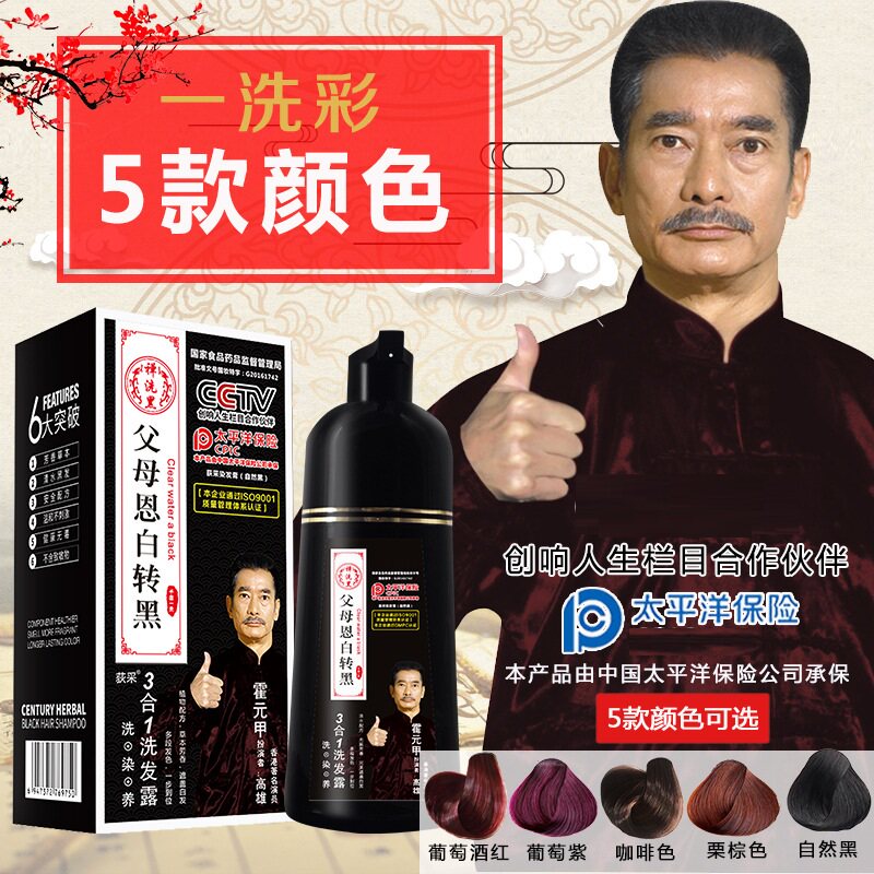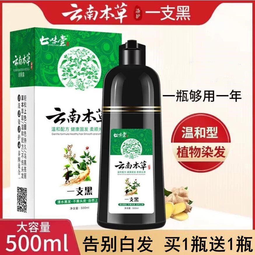 正品植物不伤发一洗黑染发剂纯黑色洗发水清水自然黑发天然焗油膏