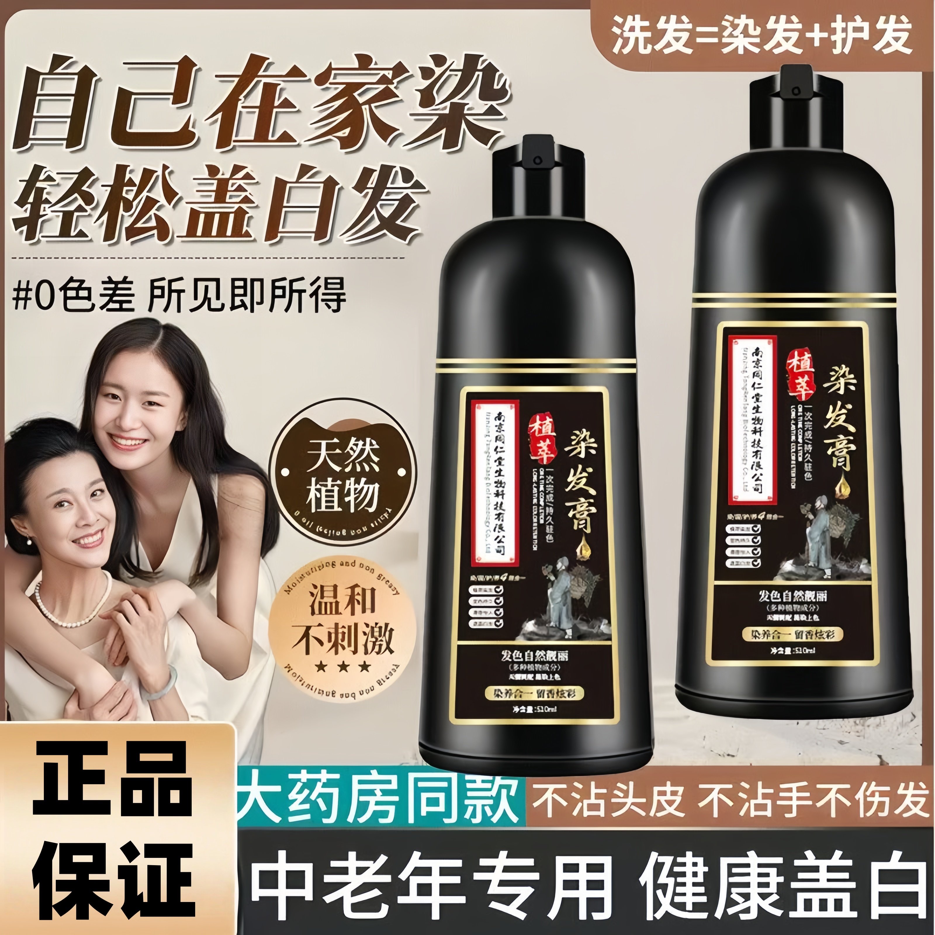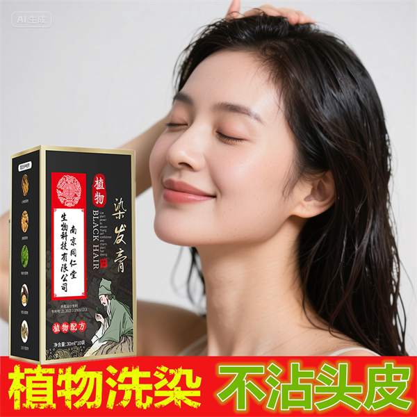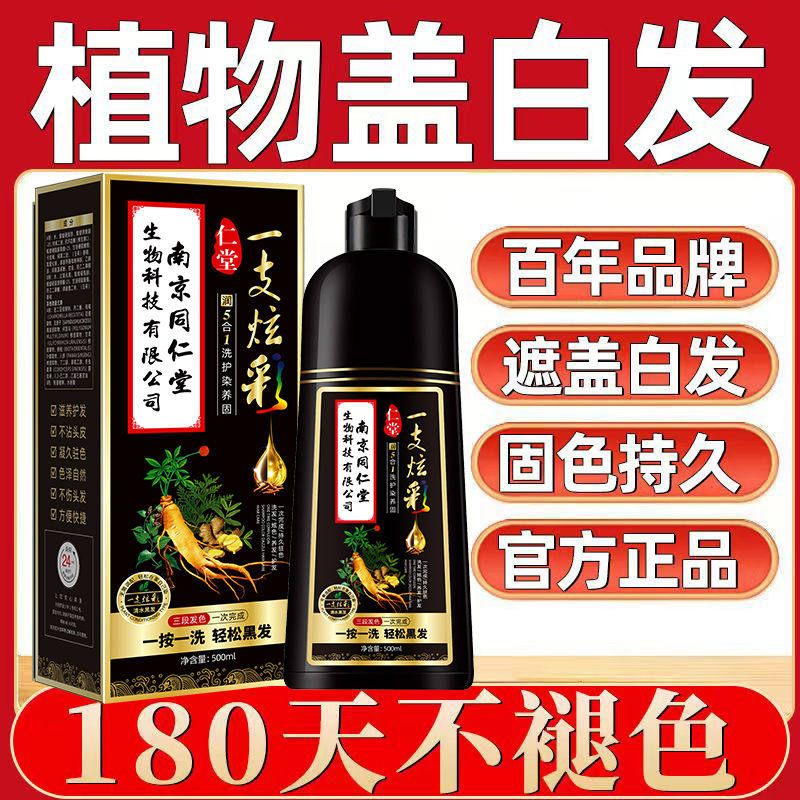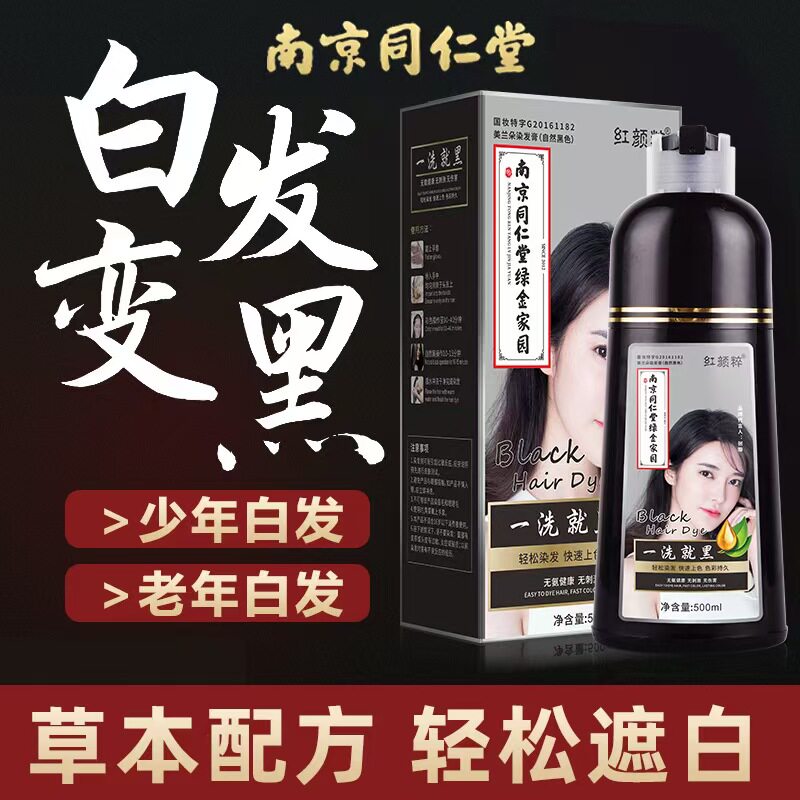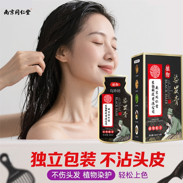 南京同仁堂一洗黑一洗彩染发剂草本植物不伤发遮盖白发在家染发膏